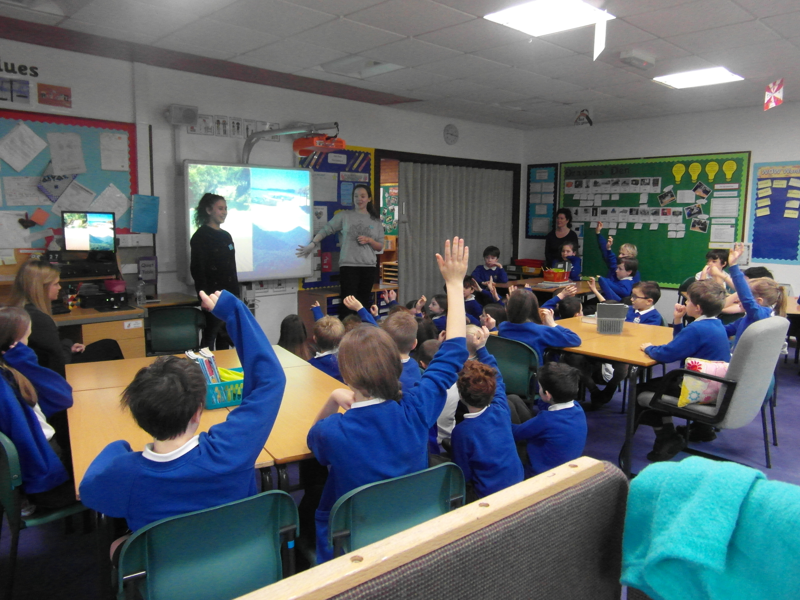 On our second day, with the P1, P2 and P3 classes, we simplified the concept of Global Citizenship. We wanted to talk about the same ideas but in a way that they would be able to understand and relate to so we used pictures from Belle’s year in Honduras to illustrate the differences and similarities between a school pupil in Scotland and in Honduras. They were all desperate to answer the questions we asked them about their lives here and then listened intently while we compared them with Honduras.