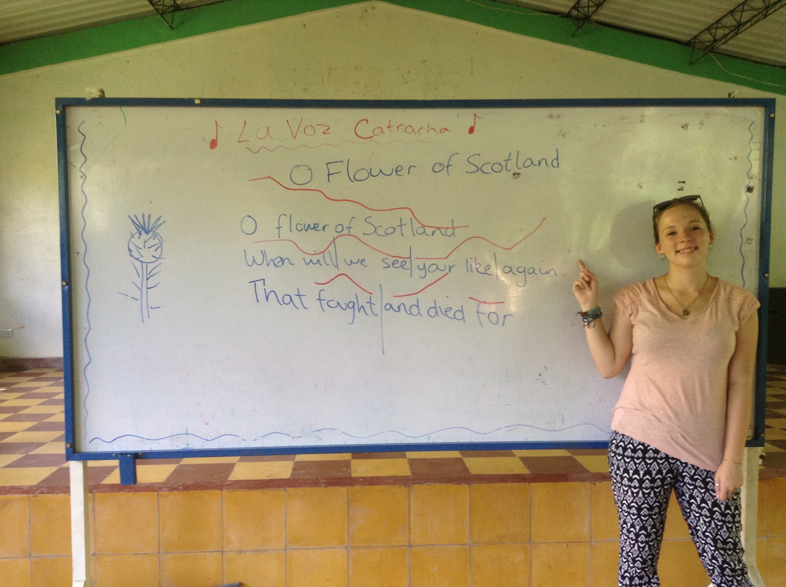 In other news, last week was the opening session of our choir! We decided to start a choir at the escuela for every kid that wanted to take part, which the teachers didn’t seem to understand at first… We decided to do two, one for 1st-3rd grade and one for 4th-6th grade. So far we’ve not done much but we have taught them the first three lines of ‘O Flower of Scotland’! (I can’t insert the video I have of it here but if you want to see it you can go to my Facebook page, Sara’s Year in Honduras, and see it there!).