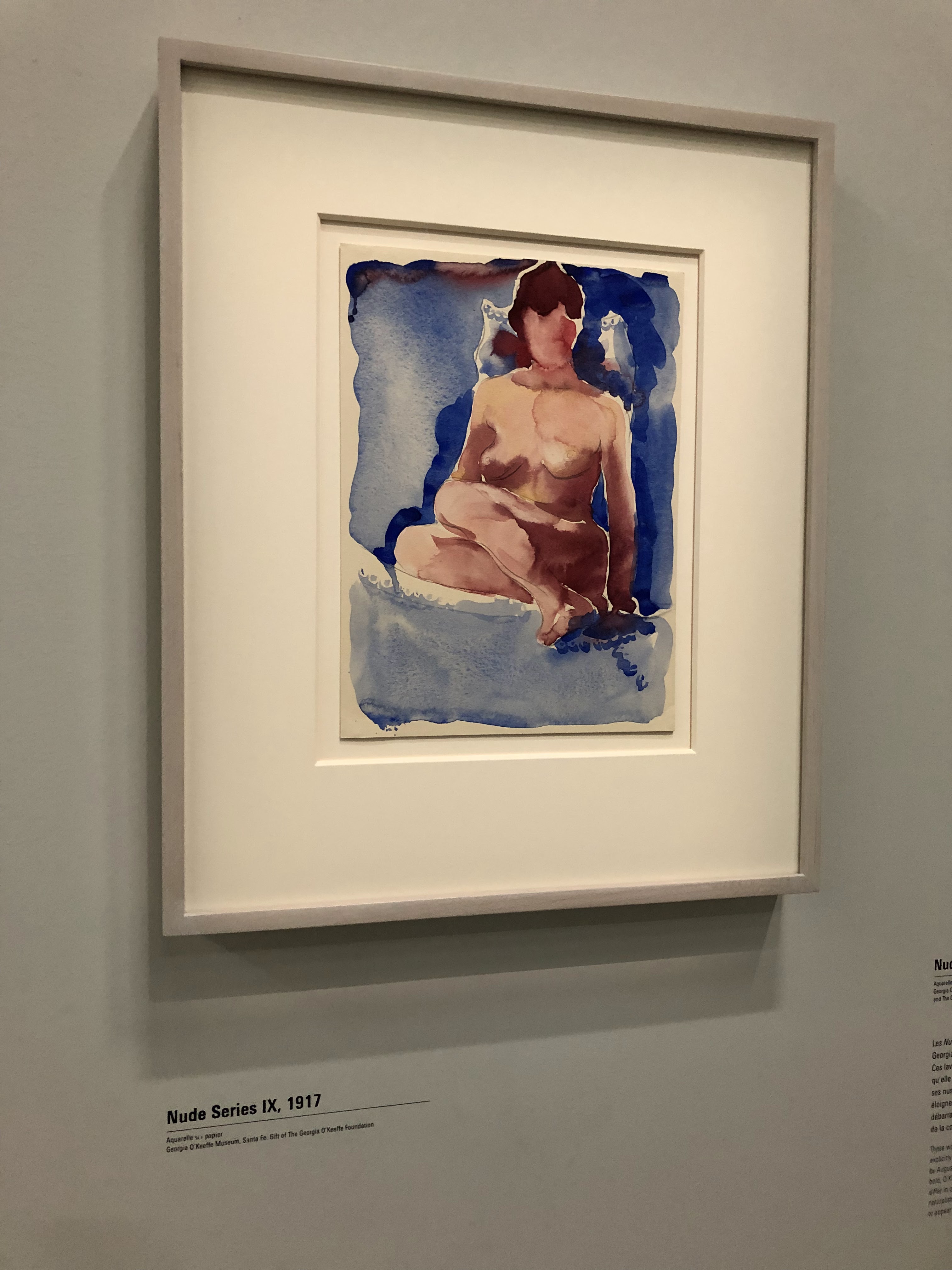 Our first exhibition was the work of the American artist Georgia O’Keefe. I didn’t really know what to expect from her having never heard of her before but I was presently surprised. She is known for her paintings of enlarged flowers, landscapes around her chosen home of New Mexico and the skyscrapers of New York. She was known during the 20th century as the ‘mother of American modernism’. As I said to my sister afterwards, I don’t know much about art but I can appreciate and enjoy a pretty picture. That’s definitely a massive oversimplification of anybody’s art, especially Georgia O’Keefe’s but it’s the best I’ve got for you. One thing I was impressed with was the variety in her paintings. There were nudes, there were the massive close ups of flowers, very minimalist designs, landscapes, bright colours and dark monochrome.