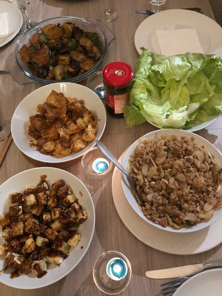 Sticking with the theme of dinner parties, I asked (or more accurately, demanded) that my flatmates and neighbours celebrate Chinese New Year, or Spring Festival, with me by having a Chinese potluck. I was able to spend Spring Festival in China in 2020 but due to the fact that I was travelling by myself at the time and that it was only a couple of days before I actually left China because of the mounting concern over the coronavirus, I didn’t get a traditional celebration nor did I write about it on the blog. Spring Festival is the largest celebration in Chinese culture and food is, of course, a very important part of that. It is custom to eat dumplings, specifically jiaozi 餃子, and although we didn’t manage to make those ourselves, we still had an amazing spread! There was di san xian (地三鲜), a traditional north-eastern dish of potatoes, aubergines and peppers (one of my favourites from when I was in Dalian), soy braised cauliflower, teriyaki tofu and hoisin chicken and water chestnuts. For dessert we had tang hulu (糖葫芦), candied fruit that is also very popular in northern China and that I saw everywhere in Dalian, with ice cream and brownies because it’s our party and we do what we want! Thanks to everyone that was there for humouring me and also coming dressed in your best red outfits (another tradition that is supposed to bring good luck!).