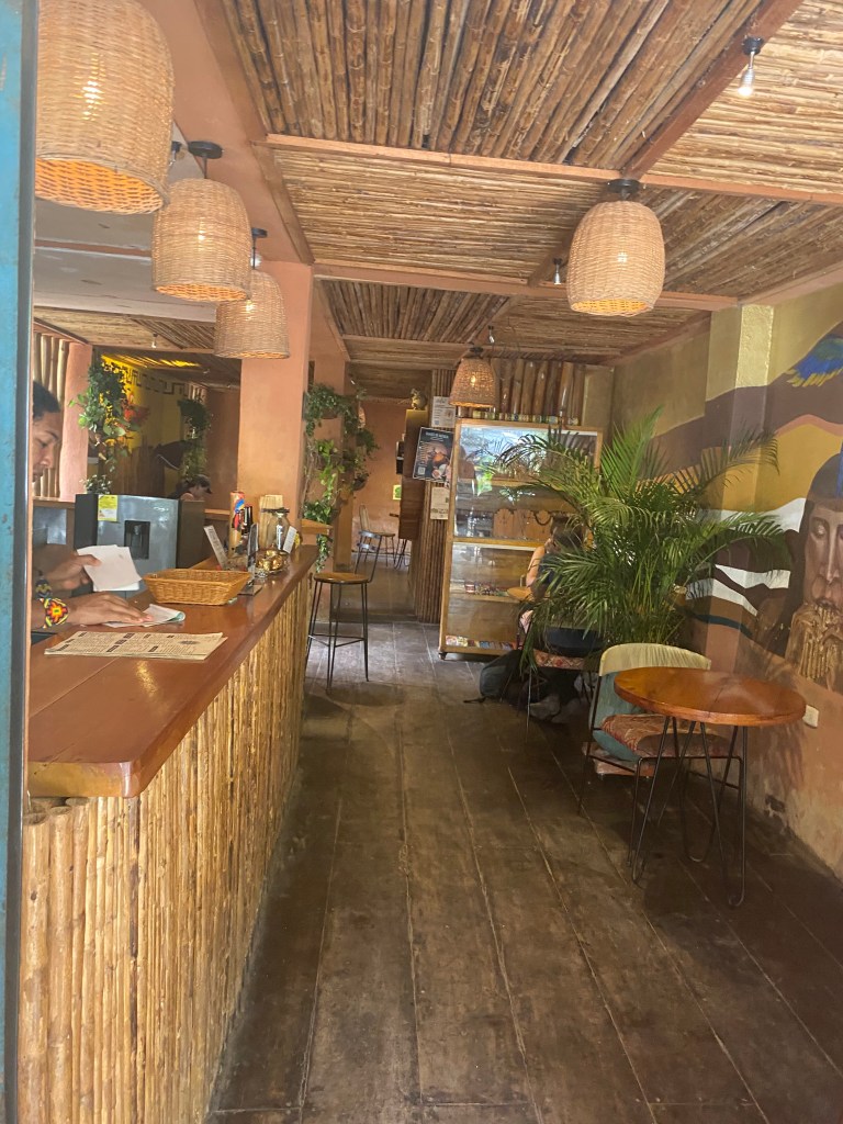 Downstairs, there are plenty of spots to lounge including hammocks, the central table used for meal times, other tables and sun beds. Hannah and I had gotten a bit confused in our research and initially didn’t think that food was included in the price but it turns out it was! Breakfast, lunch and dinner were all included which made the more expensive beds (or hammocks in this case) better value in our eyes. Breakfast was usually eggs, some Colombian pastries and fruit. For lunch and dinner, there’s either a fish or veggie option plus you can change it to fresh crab and lobster for an extra £8. There’s a bar where you can buy drinks and snacks (though the meal portions were big enough that I didn’t need anything!), all done through a wristband you get when you check in. Plus, there’s coffee, tea and drinking water available for free all day!