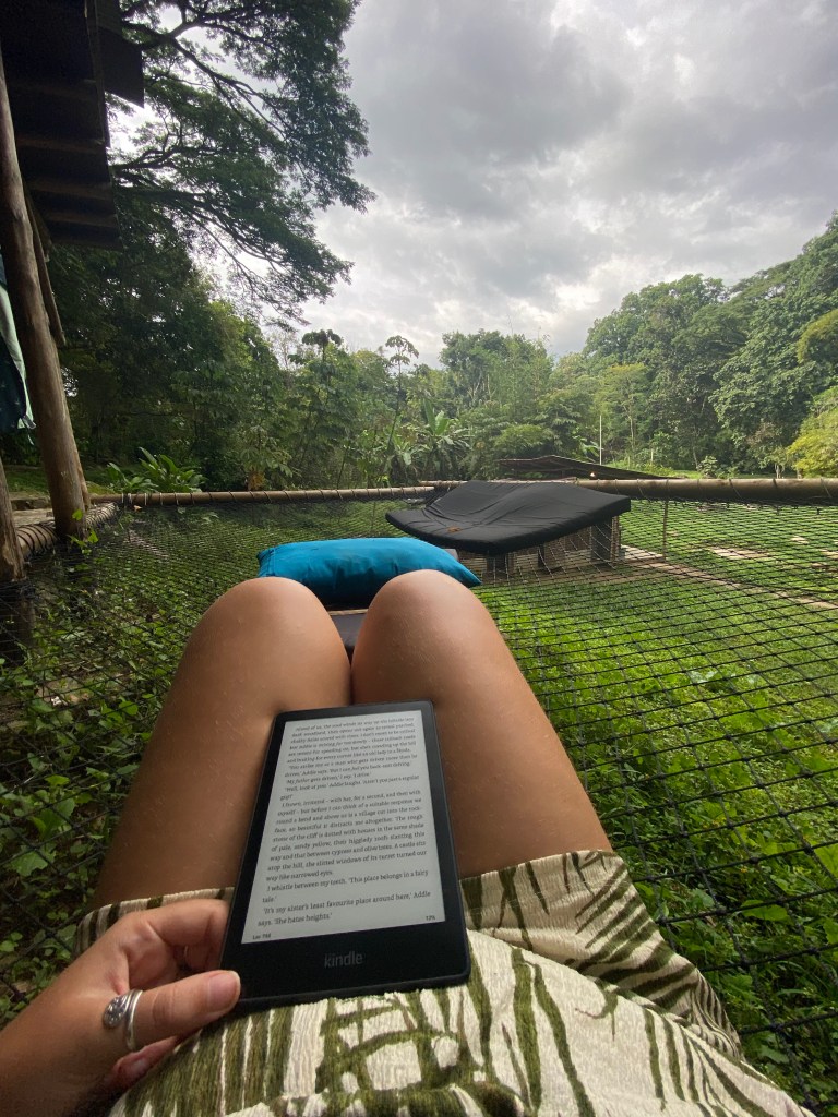 I woke up with the sun on our second day but was quite happy just chilling in my hammock for a while. Then it was bikini and shorts on, kindle in hand, ready for the day. We said goodbye to those people that were leaving after breakfast and then the day alternated between reading, swimming, playing some cards before watching the sunset again. The hostel does have equipment you can use for free like snorkels and ones you can rent like stand up paddle boards, kayaks and wakeboards as well as tours but Hannah and I were mostly happy doing nothing. We did do a lap of the hostel with some snorkels and I watched Hannah jump off the platform upstairs. I wasn’t feeling as much in the party mood that night and it seemed like most of the people I had been spending time with also opted for an early night. I quite enjoyed lying in my hammock with my book, listening to the music from downstairs.